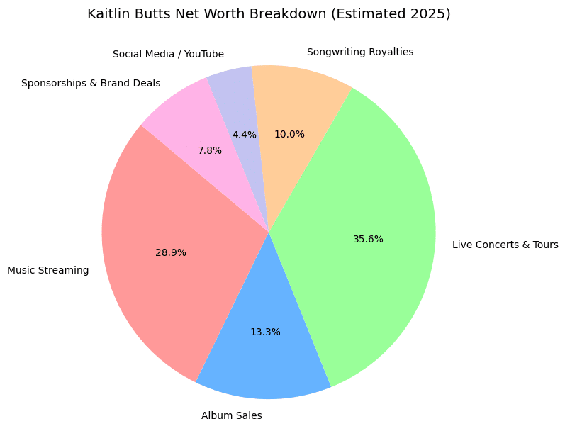 Kaitlin Butts’ estimated net worth in 2025 is steadily growing due to her diverse income sources. She earns from streaming, album sales, live concerts, royalties, and occasional sponsorships. Fans often wonder how her music career translates into financial success, and this breakdown helps illustrate exactly where her earnings come from.